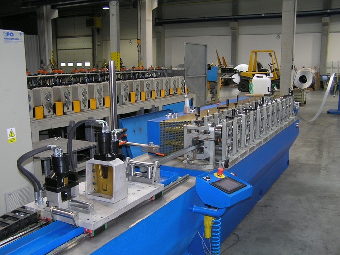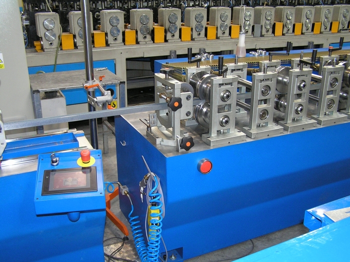 Kontinuálním způsobem se pás materiálu odvíjí ze svitku (nasazeného na odvíjedle), přes zaváděcí zařízení je usměrňován do jednotlivých tvarovacích pořadí, kde je postupně tvářen do požadovaného tvaru. V zaváděcím zařízení je upevněn pár mazacích válců, kterými je na pás plechu nanesena vrstva mazacího oleje Před tvarovacími stojany je stojan s válci, které vysekávají při výrobě určitého typu profilu do pásu plechu otvor. V tvarovacích pořadí je umístěno odměřovací zařízení délky profilu. Každé tvarovací pořadí sestává ze sady horních a dolních válců, poháněných přes kloubové hřídele z převodovky. Za posledním tvarovacím pořadím je uchycena kalibrační a rovnací hlava. Za profilovacím zařízením jsou umístěny letmé hydraulické nůžky, které stříhají profil na požadovanou délku. Na vozíku letmých nůžek je dvojice hydraulických nástrojů, které do určitého typu profilu vystřihávají před ustřižením otvor “H”. Ustřižený kus je obsluhou ručně odebírán z odbavovacího dopravníku. Ta vytvoří z profilů balík, který se na balících stolech zapáskuje a zapáskované balíky se ukládají na paletu. Celá linka se spouští a řídí z ovládacího pultu pomocí dotykového displeje.